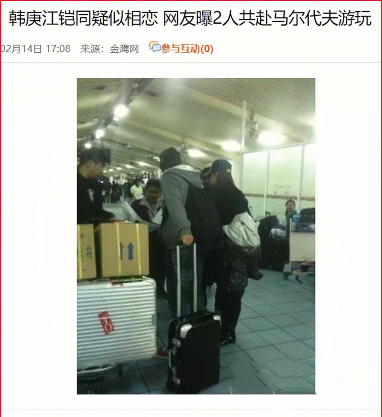 在无缝衔接3位女星后,情场得意的韩庚,又在2012年被网友曝出,与江铠同携手游马尔代夫的照片。